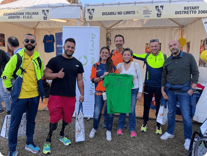 Disabili No Limits APS nasce a Milano nel 2011 da un'idea di Giusy Versace, atleta paralimpica e campionessa italiana dei 100 e 200 metri. Grazie ad una tecnologia avanzata e accessibile vogliamo restituire a tutte le persone con disabilità una vita più autonoma donando ausili che, ad oggi, non sono previsti dal Sistema Sanitario Nazionale (ASL) . Raccogliamo fondi per donare sedie a ruote ultraleggere e protesi in fibra di carbonio, per attività quotidiane e sportive a sostegno di coloro che vivono condizioni economiche svantaggiate. Organizziamo eventi per promuovere la pratica sportiva e per consentire, soprattutto ai più giovani, di vivere al meglio la propria disabilità guardando allo sport come terapia e nuova opportunità di vita.