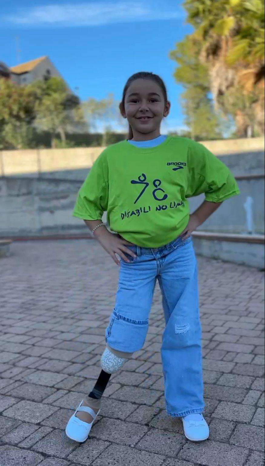 Nel giro di pochi mesi, grazie anche alla collaborazione del centro ortopedico Ro.Ga di Enna (CT), la Disabili No Limits è riuscita a consegnare ad Angela una protesi transtibiale, adatta per svolgere attività ludiche come il gioco e il ballo. La protesi si compone di un piede Cheetah Xplore Junior della Össur, con cuffia in silicone e rivestimento con una grafica personalizzata con fantasia di ‘Unicorno’.